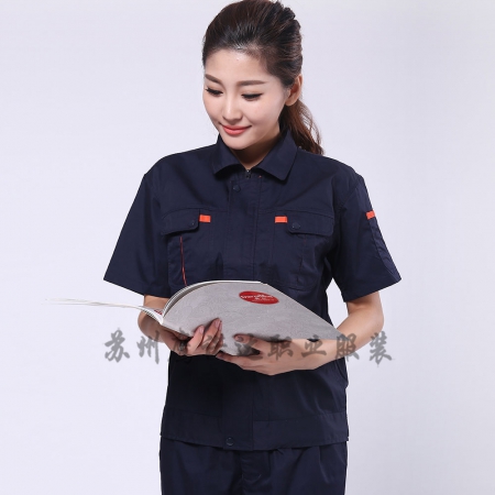苏州鹰诺服装:深兰色夏季工衣套装AD070