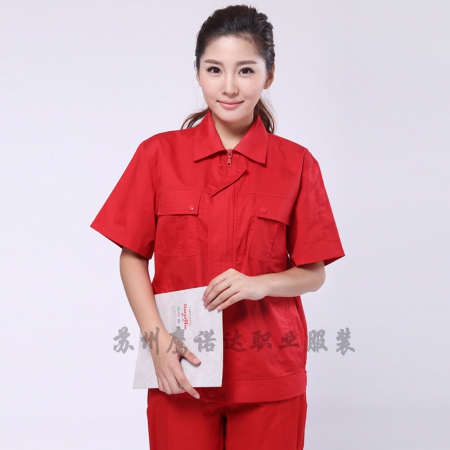 苏州鹰诺服装:大红夏季工装工作服AD083