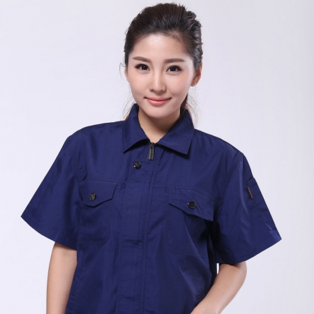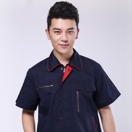 苏州鹰诺服装:藏青拼大红夏季工装工作服AD103