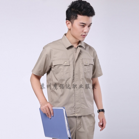 苏州鹰诺服装:驼色拼浅灰工作服AC17-1