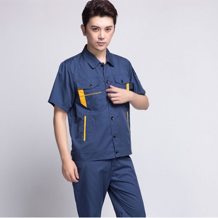 苏州鹰诺服装:艳蓝色短袖工作服AD12-4
