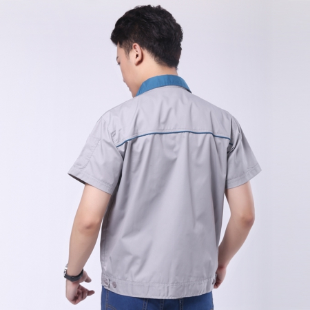 苏州鹰诺服装:清灰拼银灰全棉夏季工作服AD06-2