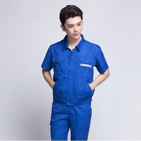 苏州鹰诺服装:艳蓝色短袖工作服AD12-4