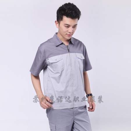 苏州鹰诺服装:绿灰拼桔黄夏季工作服AD106