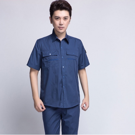 卡其拼藏青涤棉纱卡春秋工衣AC109