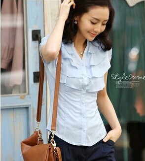 3.搭配指南:职业式的衬衣装单搭起来最能体现高雅OL的气质,另外加上一个精致的大包包,才能更具时尚感。