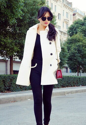 5.搭配指南:双排扣外套,帅气的复古的同时也同样具备女人味。加上黑白的经典搭配,最符合职业OL们的气质。