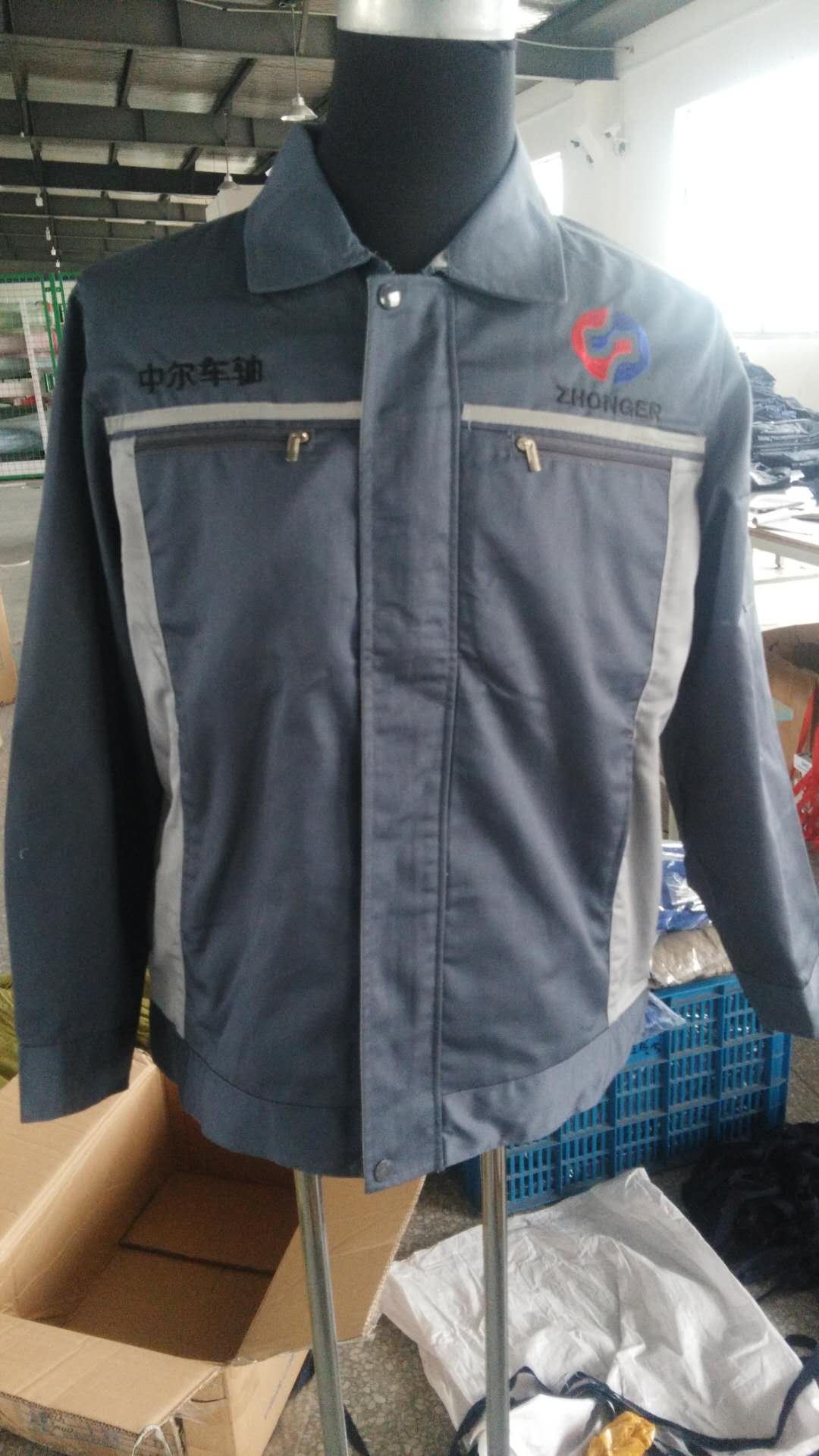 湖北中尔车轴的维修工作服定做事宜已经全部交接完成。目前货已经交付齐全。左前胸刺绣他们的公司主LOGO。右胸刺绣“中尔车轴”四个字。以上是高棉环保面料。面料具备了纯棉的柔软舒适,吸汗透气的优点,也结合了涤棉耐磨耐洗不起皱的优势。总体来说是一款性价比极高的中高端工作服。