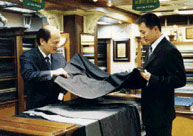 5、选择面料 由于每个人的体型、喜好、职业类别、活动场合各不相同,唯有依据每位顾客不同的需求,以西服美学设计的观点,提供适切的建议,推荐合宜的面料花色,介绍合适的款式,让顾客能依自己的喜好选择能穿出个人风格特色的定做西服。 |