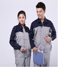 驼色纱卡全棉工作服套装AC074-QM 深蓝配浅灰全棉劳保工作服AC079-QM