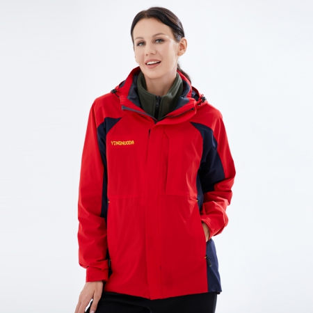 苏州鹰诺服装:红拼黑色冲锋衣CFY1903-15