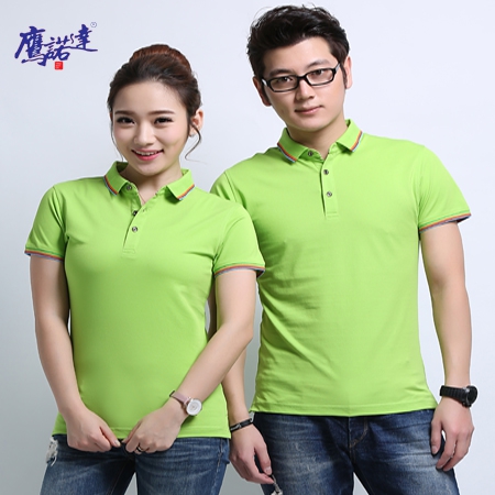 苏州鹰诺服装:果绿电脑提花领天麻纤维棉Polo衫ID6122-7