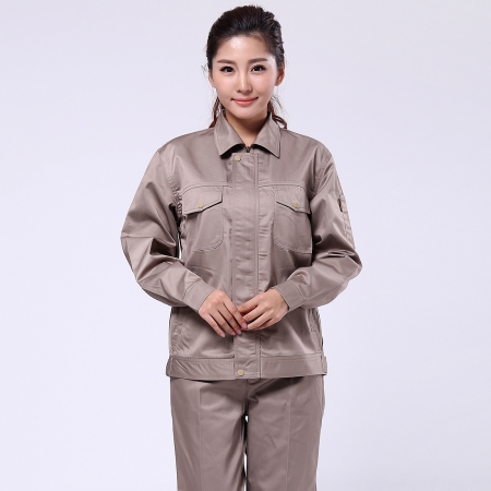 苏州鹰诺服装:青岛做工作服驼灰拼黄色AC111