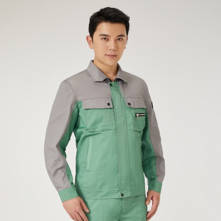 嫩绿拼灰色工作服AC2205-2