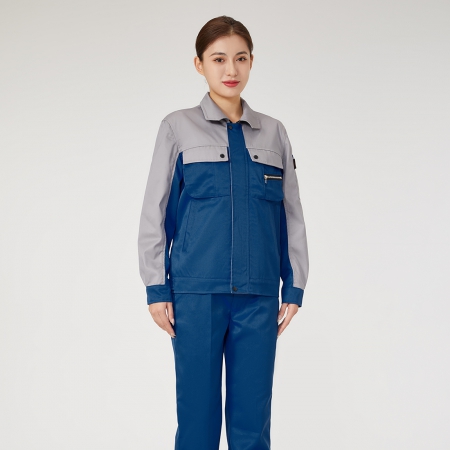 苏州鹰诺服装:浅灰拼艳蓝色工作服AC2204-4