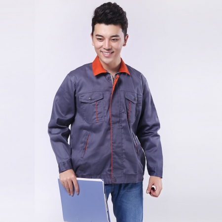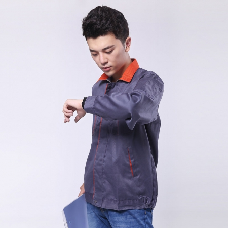 苏州鹰诺服装:灰色拼橘黄春秋工作服AC024-1-CQ