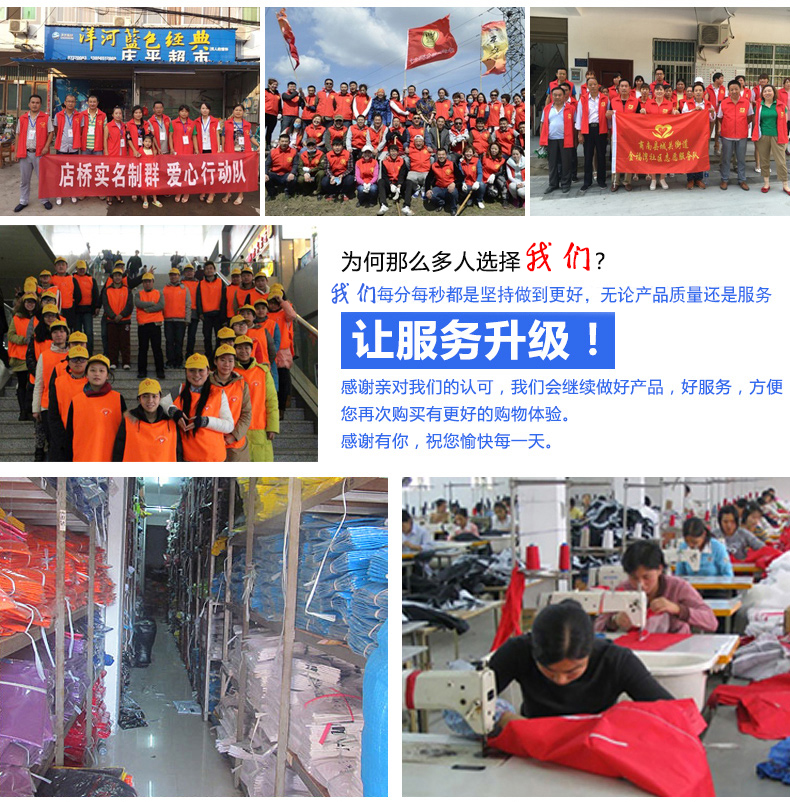 正是坚守着这种信念,历经16年的发展,由最初的10多人的起家的小企业,发展到今天拥有企业盐城骏放服饰,苏州鹰吉派劳保,苏州凯宏劳保下属3家企业,员工人数5000余人的大型企业,2001年按国际惯例组建了三大中心,生产中心以白大褂为龙头,推动其它产品,如t恤,西服,冲锋衣,安全帽等,营销中心从事产品开发和市场销售,目前遍及全国的营销网络已经形成。售后中心以帮助顾客解决问题的原则,7*24小时服务!