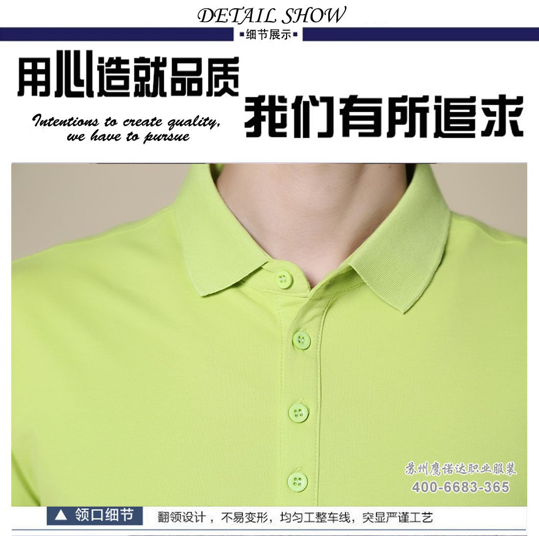 果绿纯棉莱卡t恤衫工作服ID13258-7