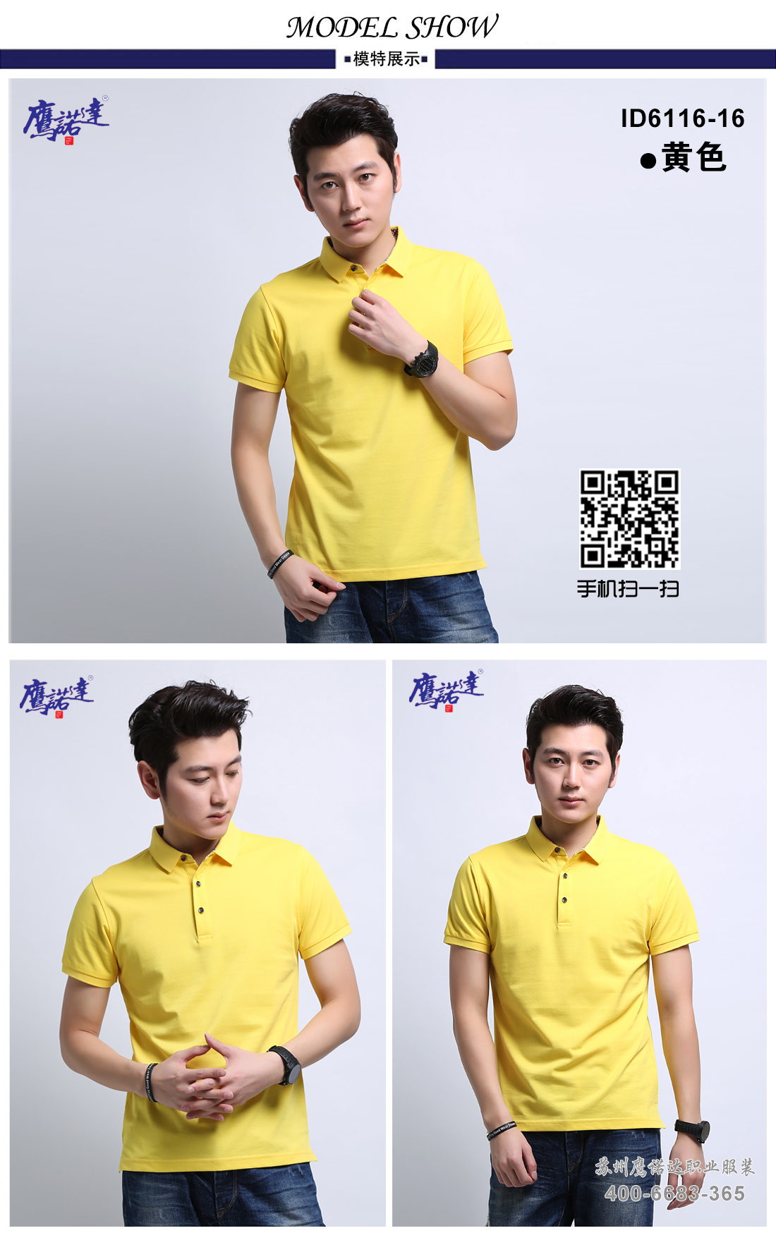 黄色CVC抗起球纤维t恤衫工作服ID6116-16