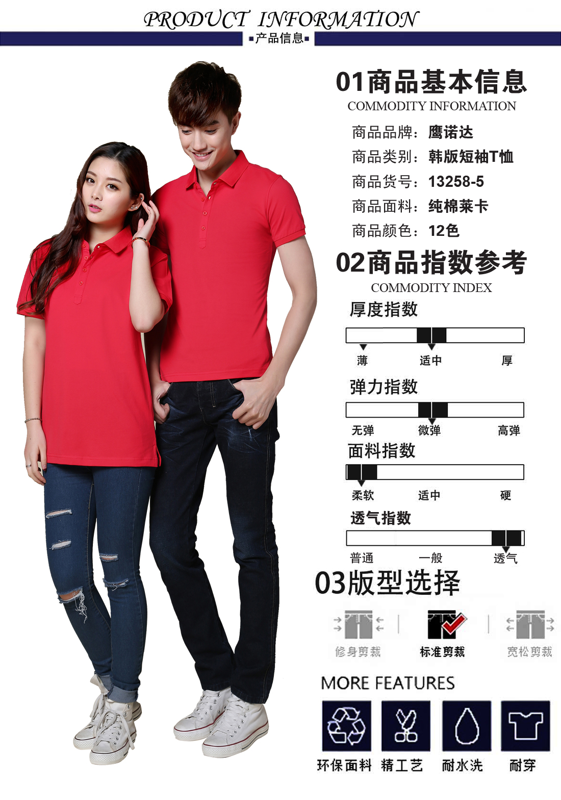大红翻领纯棉莱卡Polo衫ID13258-5