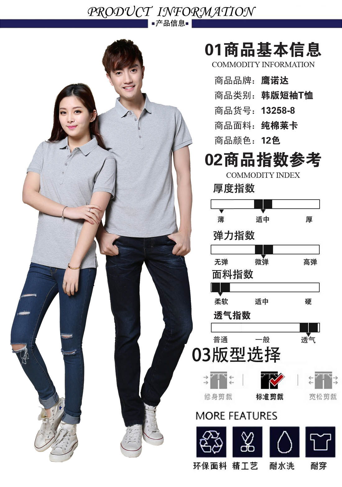- 材质:全棉莱卡