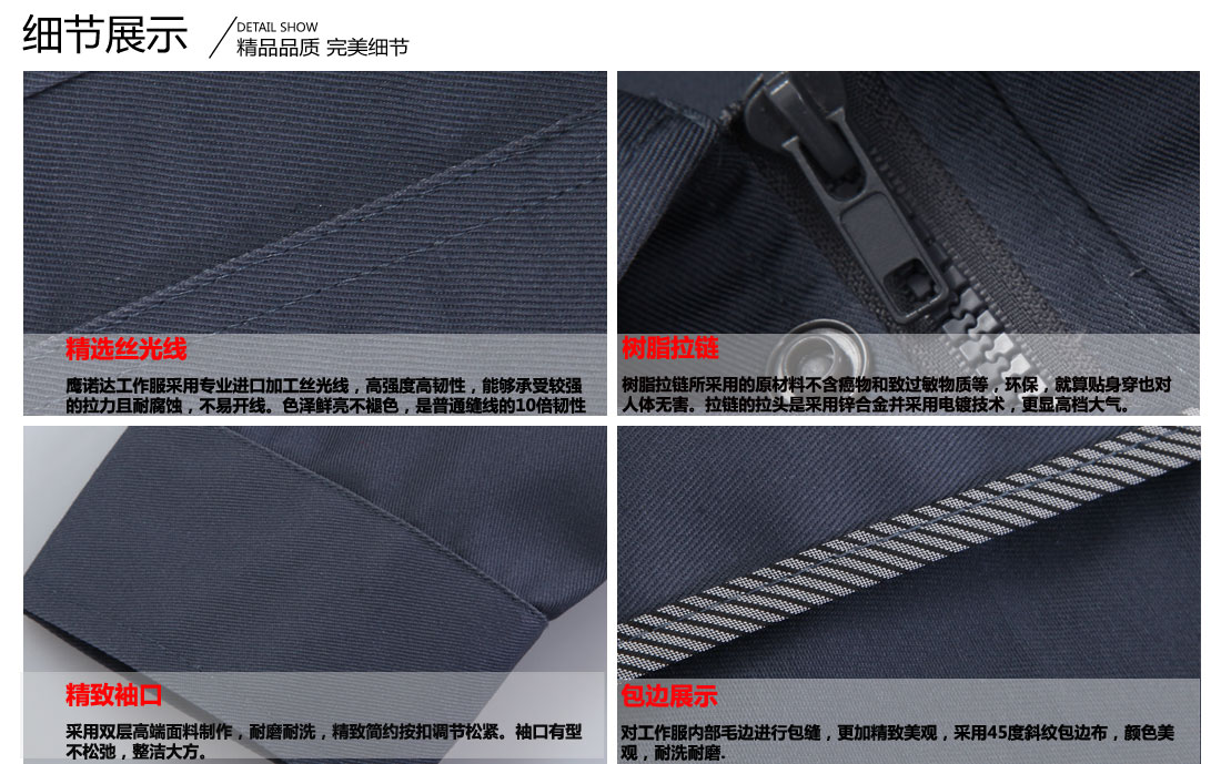 - 游客于 2018-11-13 16:52:51 发表苏州鹰诺服装:青岛工作服定做深灰配浅灰AC077