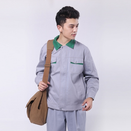 苏州鹰诺服装:浅灰拼绿色全棉工作服AC121-CQ