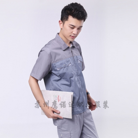 苏州鹰诺服装:浅灰拼绿色全棉工作服AC121-CQ