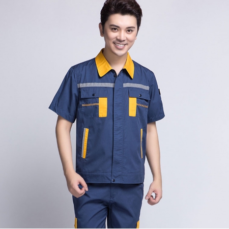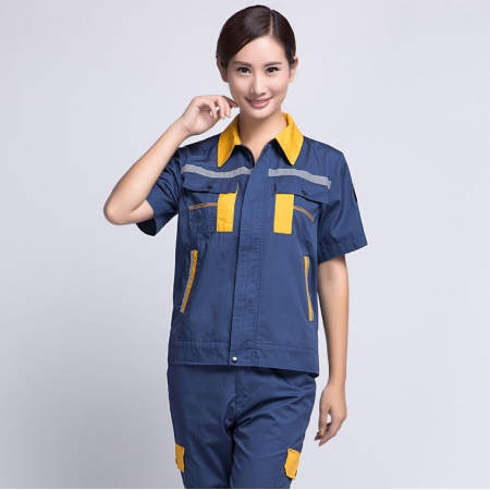 卡其拼藏青涤棉纱卡长袖工衣AC109