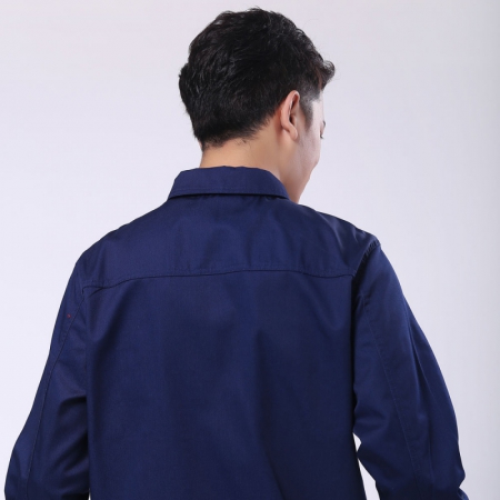 卡其拼藏青涤棉纱卡长袖工衣AC109