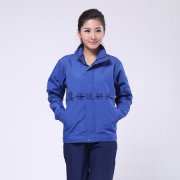 苏州鹰诺服装:藏青色拼紫红银白工作服AC02