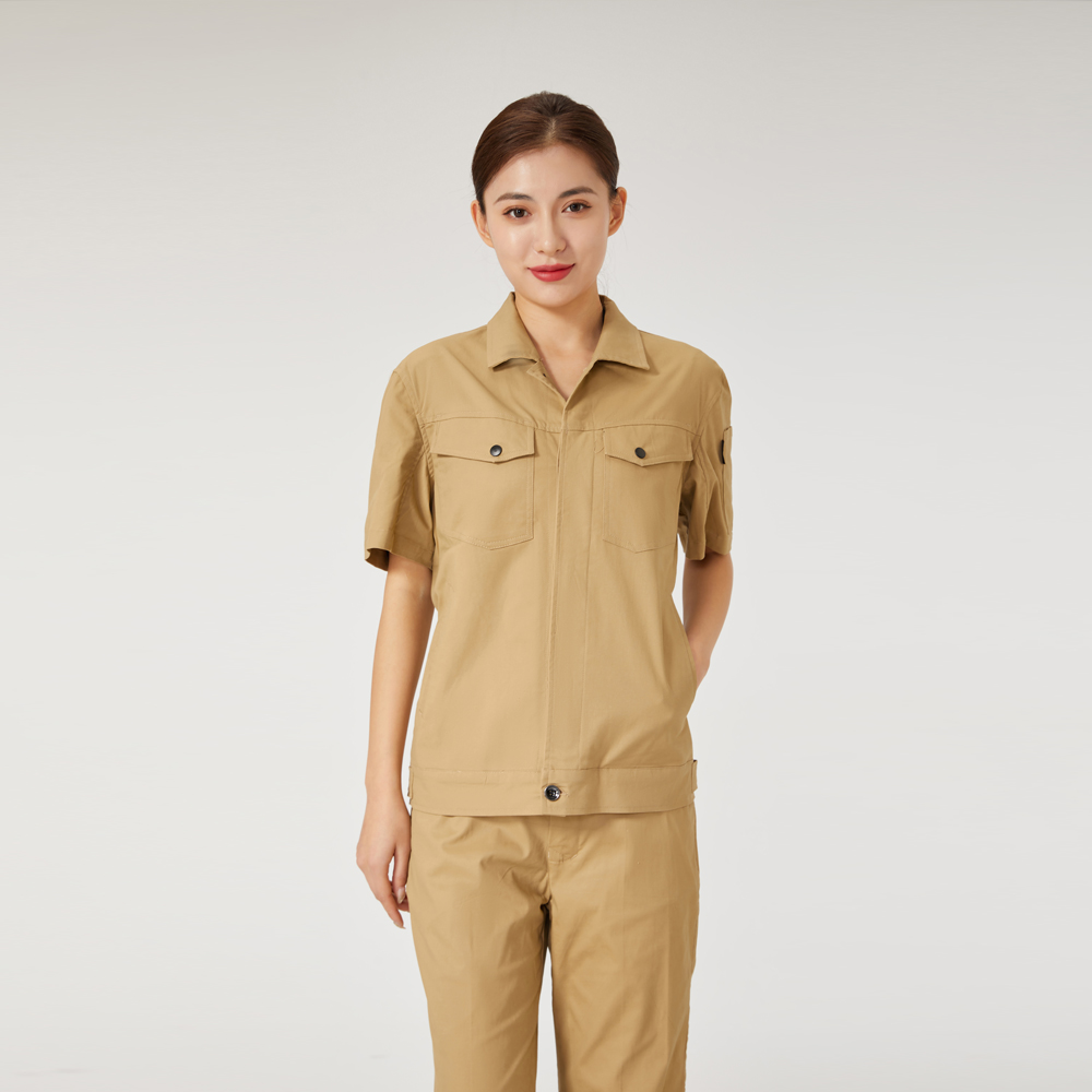 苏州鹰诺服装:米色拼黄色夏季工作服AD09-1