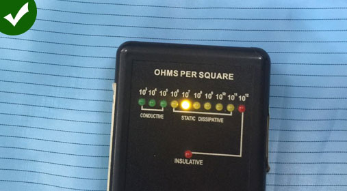 鹰诺达产品采用5MM条纹面料导电绸防静电值能达106-109次方,持久性防静电,耐清洗次数:100次左右,兼有阻燃、防油性能