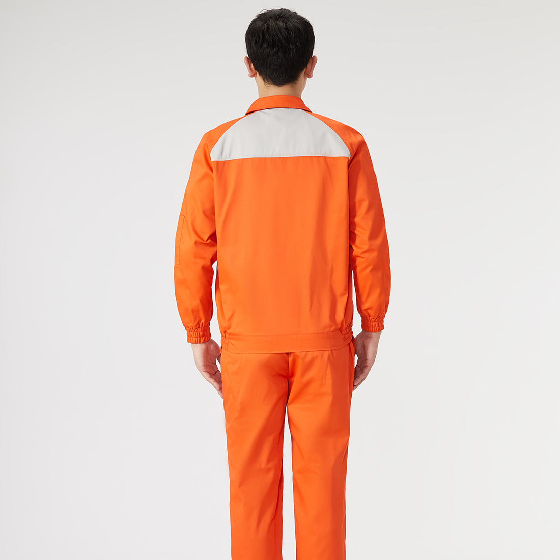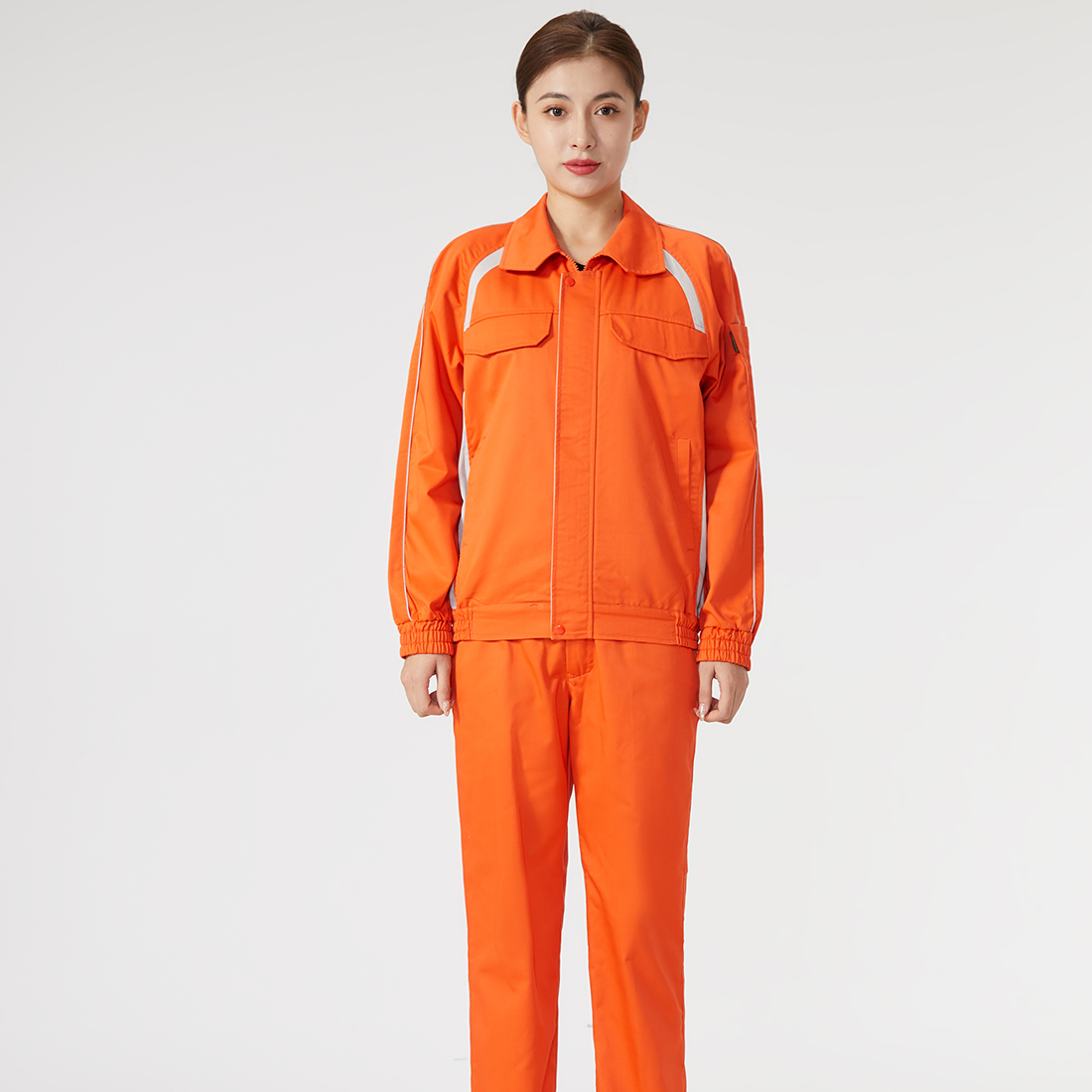 苏州鹰诺服装:深蓝配桔红夏季工作服AD069